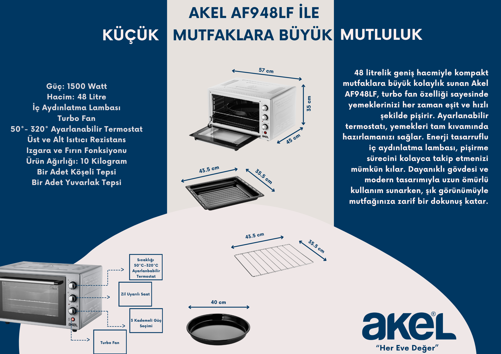 AKEL AF948LF LAMBALI FANLI TERMOSTATLI 45LT MİDİ FIRIN